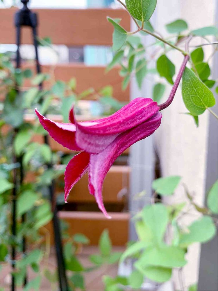 うちには青系やピンクのクレマチスが多い中、唯一の赤色クレマチスです🎶