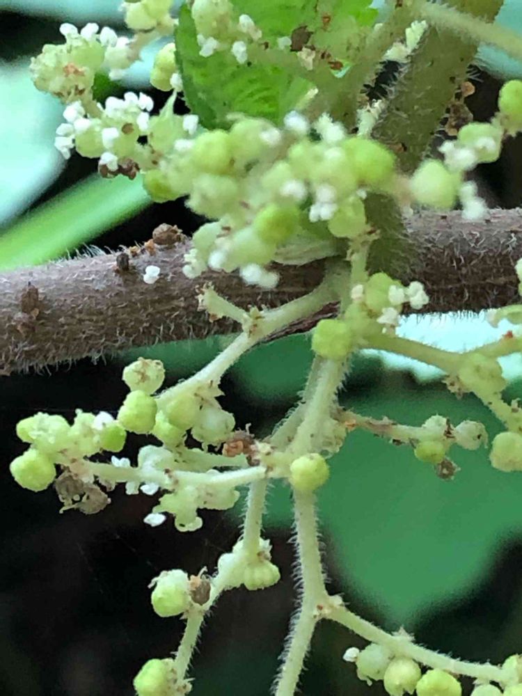 雌雄同株で、上に咲くのが雌花。下が雄花。