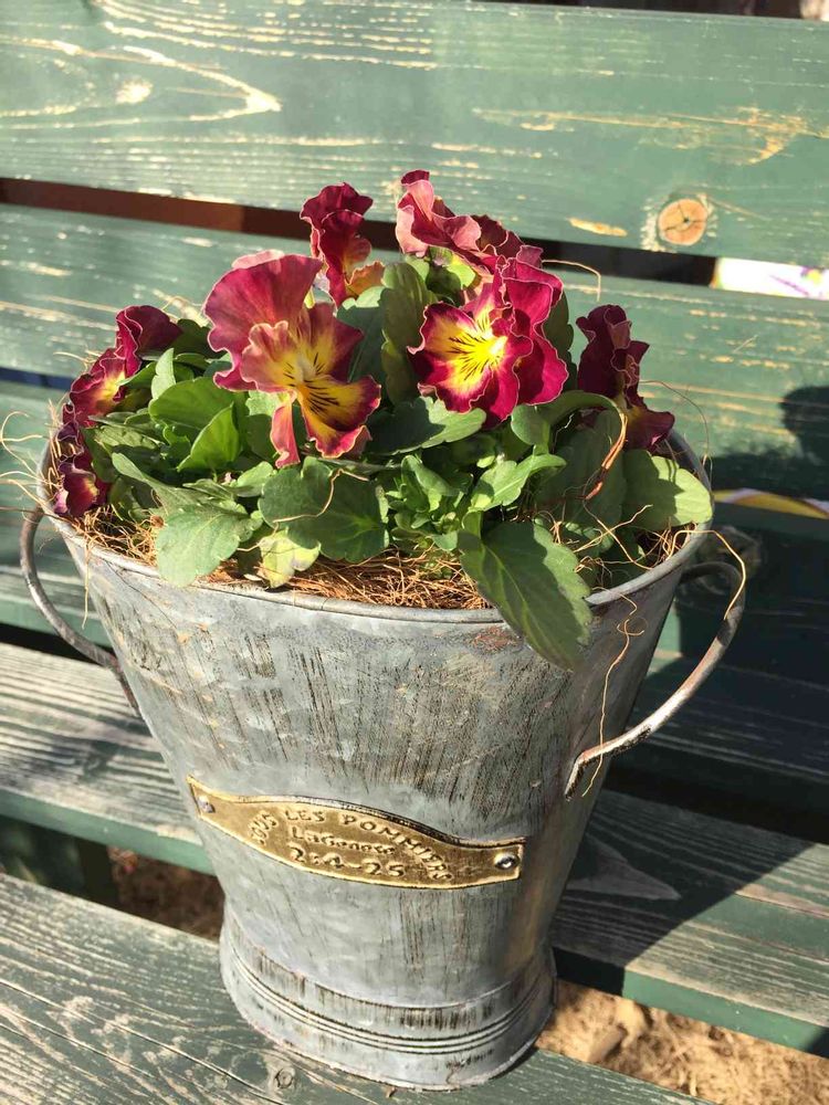 今日は天気が良いのでやっとエンジェルドロップスでゲットしたブリキ鉢にフリルビオラ植えられました💐