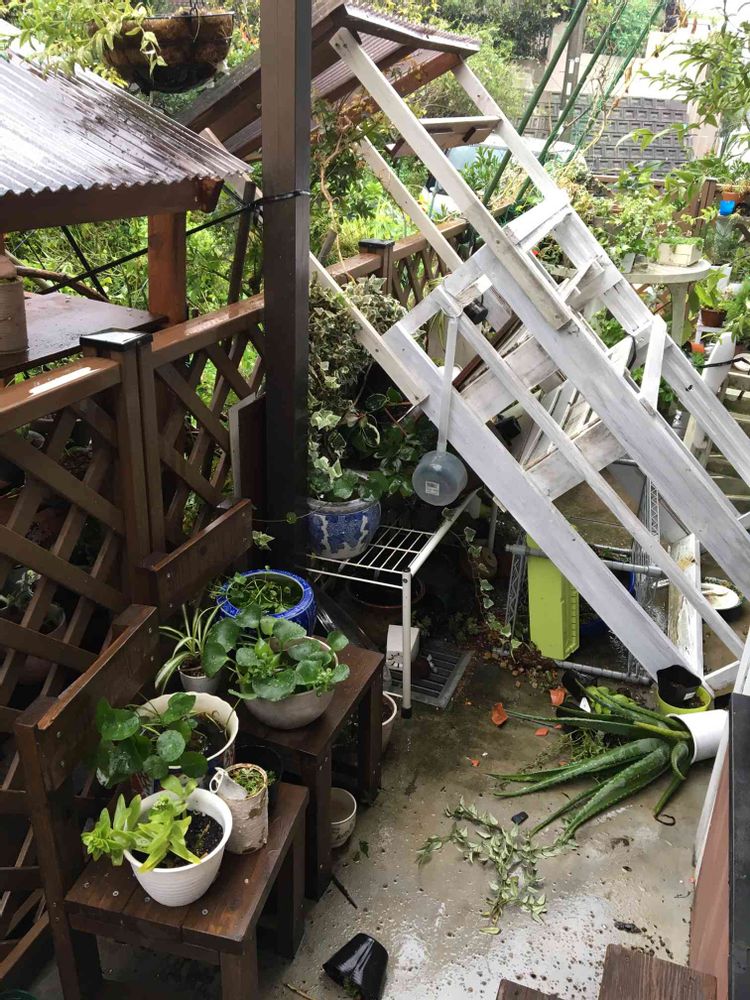 うちも同じ日の午前中に、南側に置いてあった簡易温室が植物ごと倒れました(っω<`。)