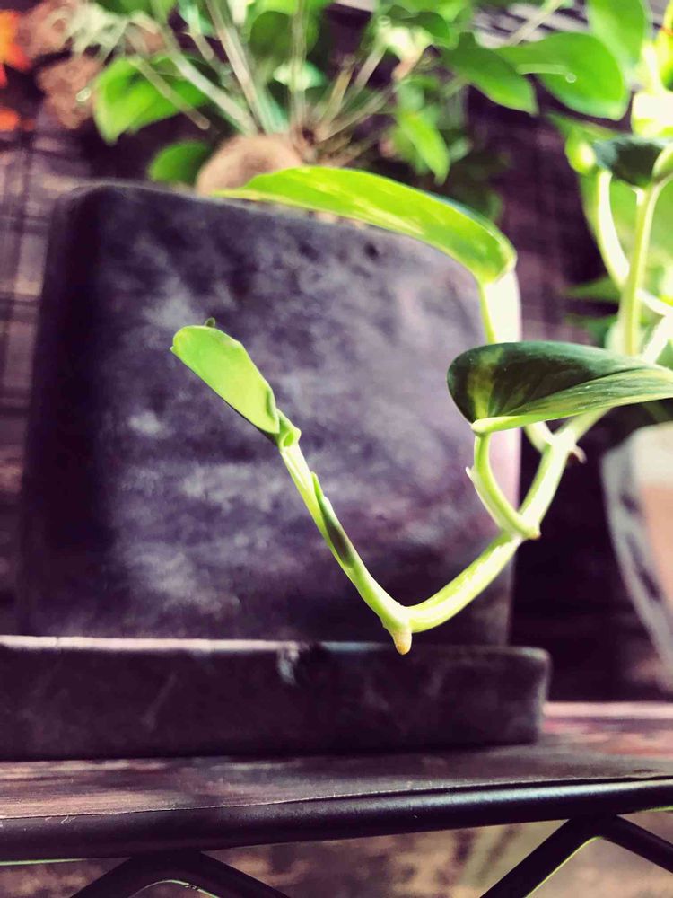 ジェルポリマーで水挿しにしてるポトスは新芽が開ききってもないのに次の新芽が頭をこんにちはさせてる🙄🌱