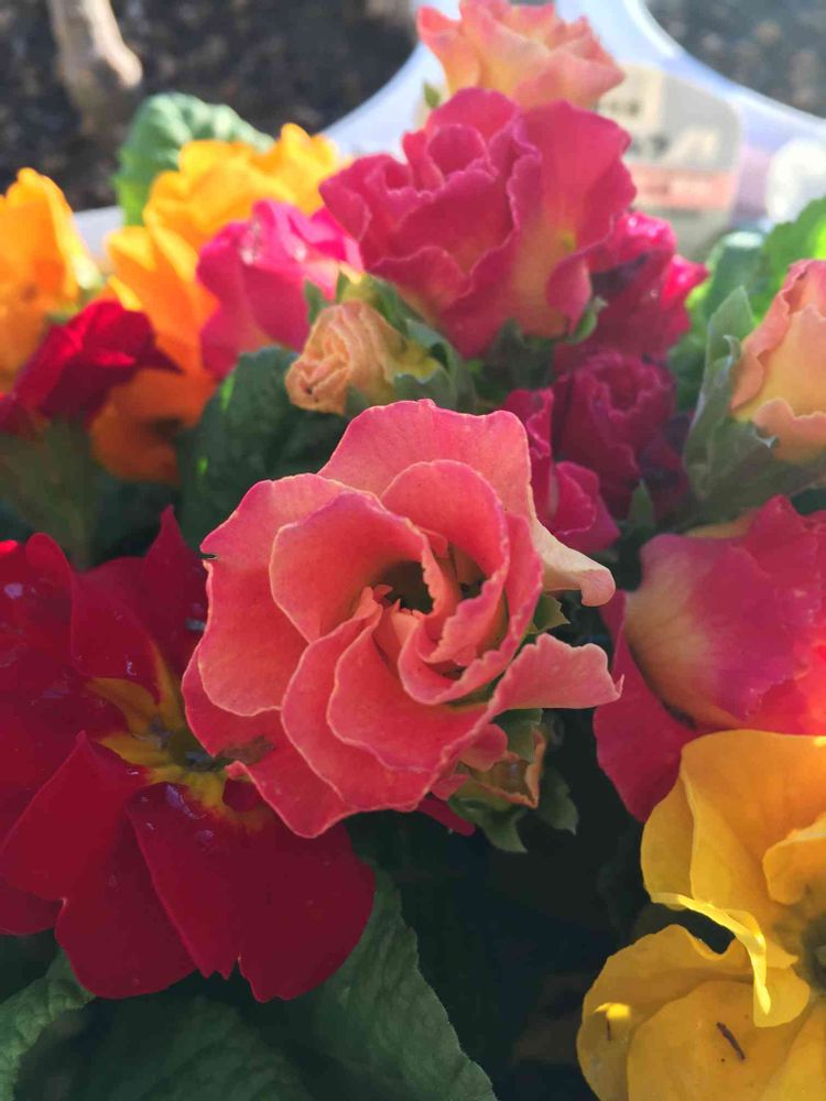 バラ🌹咲きプリムラを中心に、プリムラさんだけで寄せ植えに🤗