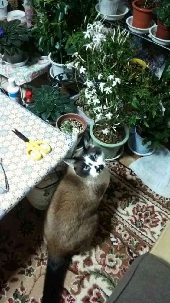初めまして😸なぜかジャスミンが気になってしまうんですけど😸😅このあと猫パンチしました😅❔😆なぜかな?