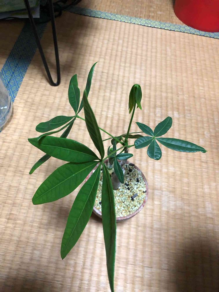 台風の影響の強風に、室内退避させるのを忘れて仕事に出てしまい、帰宅したらパキラさんの葉のが、反り繰り替えって形が変わってた😱