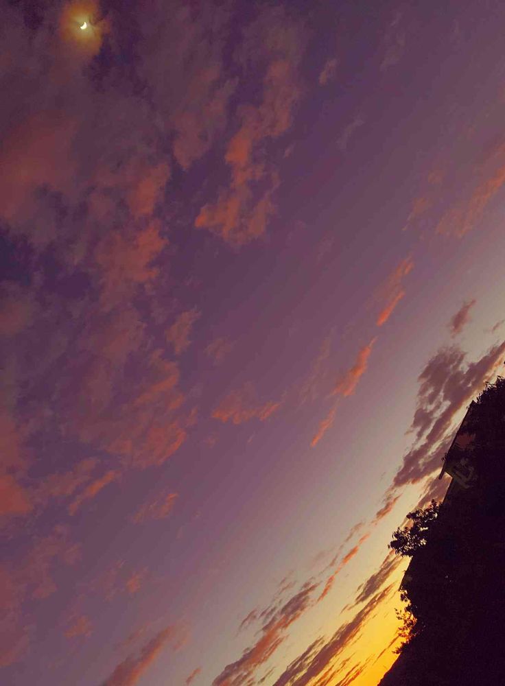 朝焼けと月を