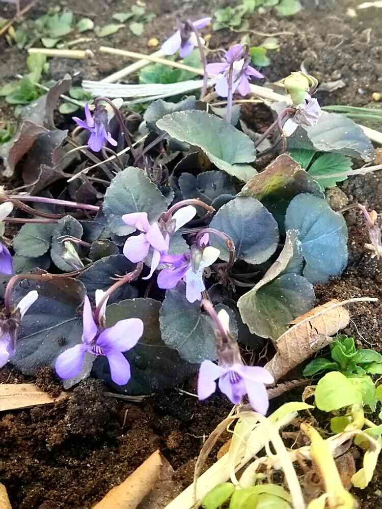 このビオラ、強いしグランドカバーにも、いいし、葉がシルバーだからシックな 寄せ植えにもいい⤴とネット丸写し~💦