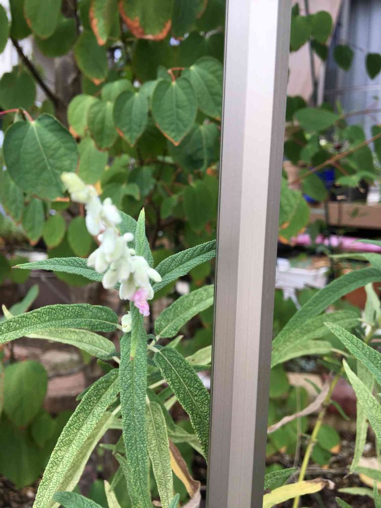 サルビアレウカンサほとんど水やりしていませんでした。地植えなので放置でしたが、やはり暑さに負けてますね。かわいいピンク色のモフモフにはならなかった😅💦