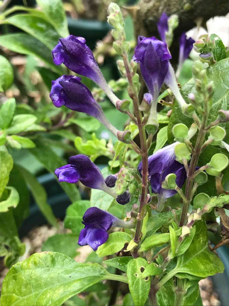 スクラテリア ジャワニカベランダが鮮やかな紫色の小花を咲かせています。