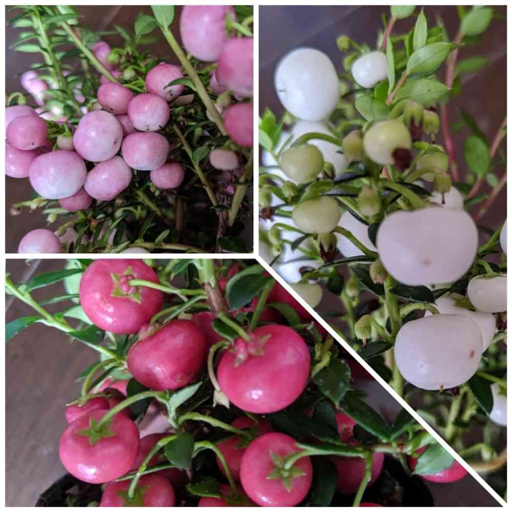 春に可憐な白い花を付け、秋には赤・白・ピンクの光沢のあるコロンとした丸い実が毎年実ります。と説明カードに書いてある。