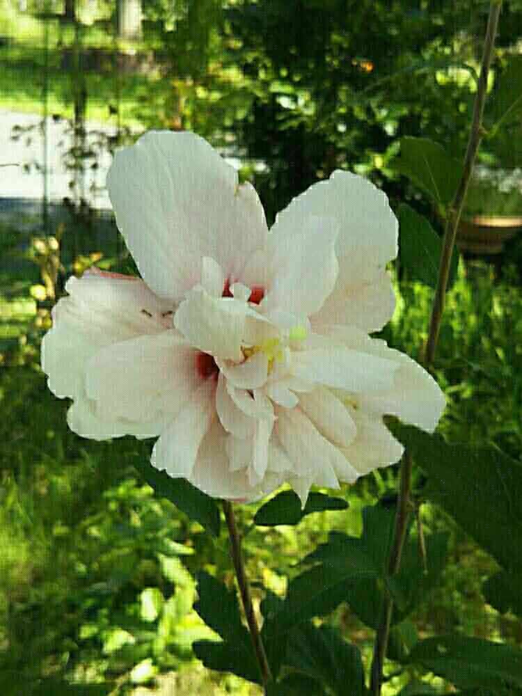 お出かけ先,病院前の公園,八重咲きの白いムクゲの投稿画像