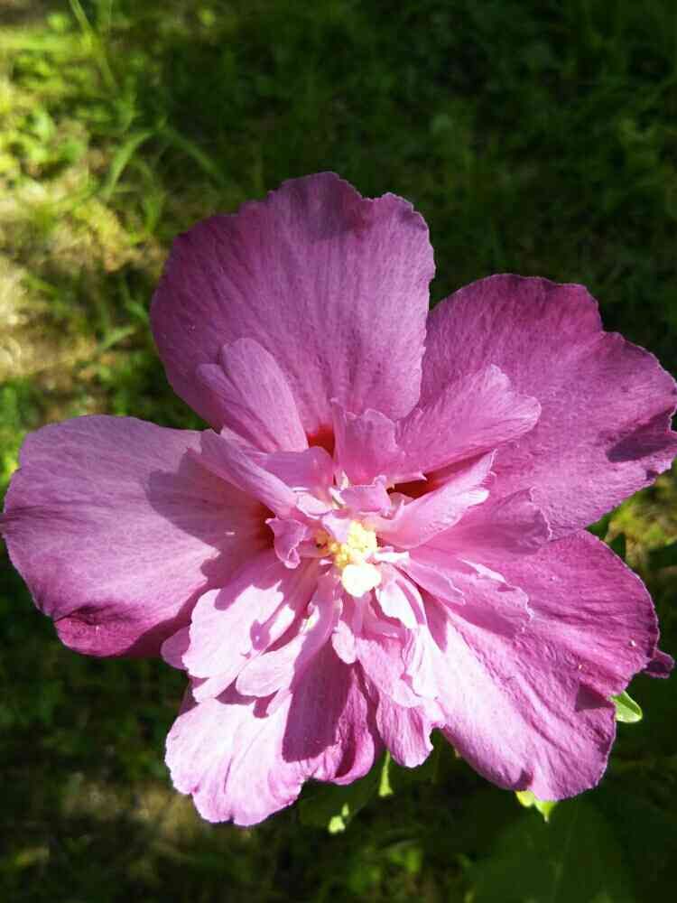 お出かけ先,病院前の公園,八重咲きのピンクのムクゲの投稿画像