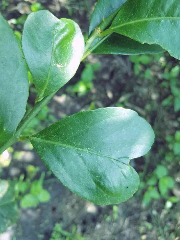 レモンの四つ葉のクローバー的な!? ハート型の葉っぱです🍃 実はレモンの葉にも香りがあって、レモンの葉でお茶を淹れると美味しいんですよ~😆☕✧