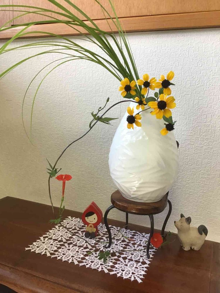 本当に 庭に 生えてる草を ちょっと 頂いて、ポン❣️って、入れて すぐ 出来る花生け を 楽しんでいます❗️