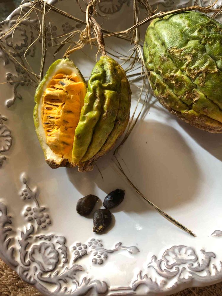 インゴイゴイ、、烏瓜はオレンジ色なので違うな、、観音様の種が入っているはずだし、。