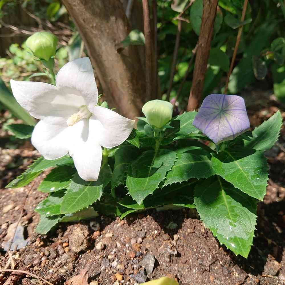 白の桔梗と紫の桔梗、一緒に咲くんですね。