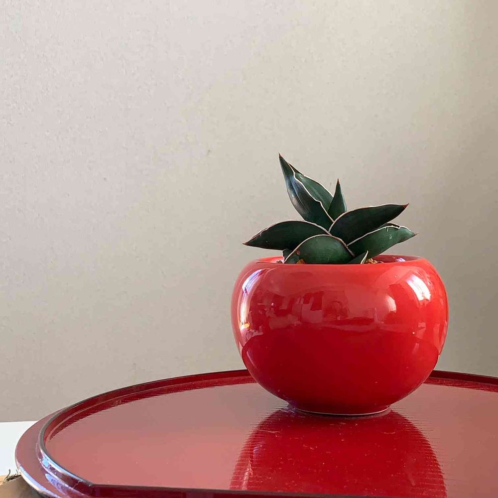 真っ赤な鉢と緑がまさにトマト🍅❤️