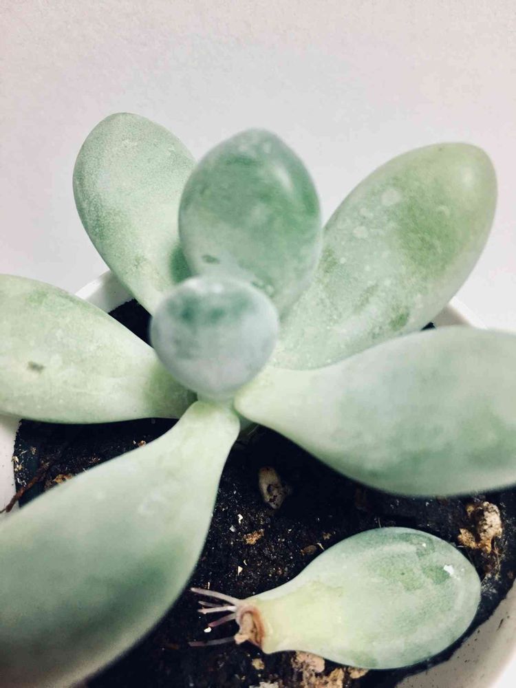 買ったばかりの時にポロッと取れた子はそのまま置いてたの。葉から出るかな❓という期待に応えて根がでてまいりました❣️😊