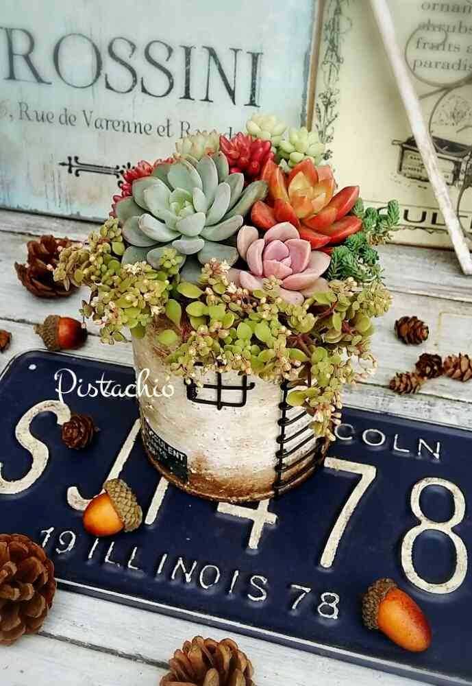 寄せ植えは、リメ缶を使った寄せ植え見本として飾ります♪