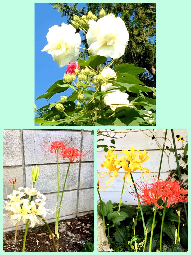 酔芙蓉が青空に映えて咲き出しました💕🎶