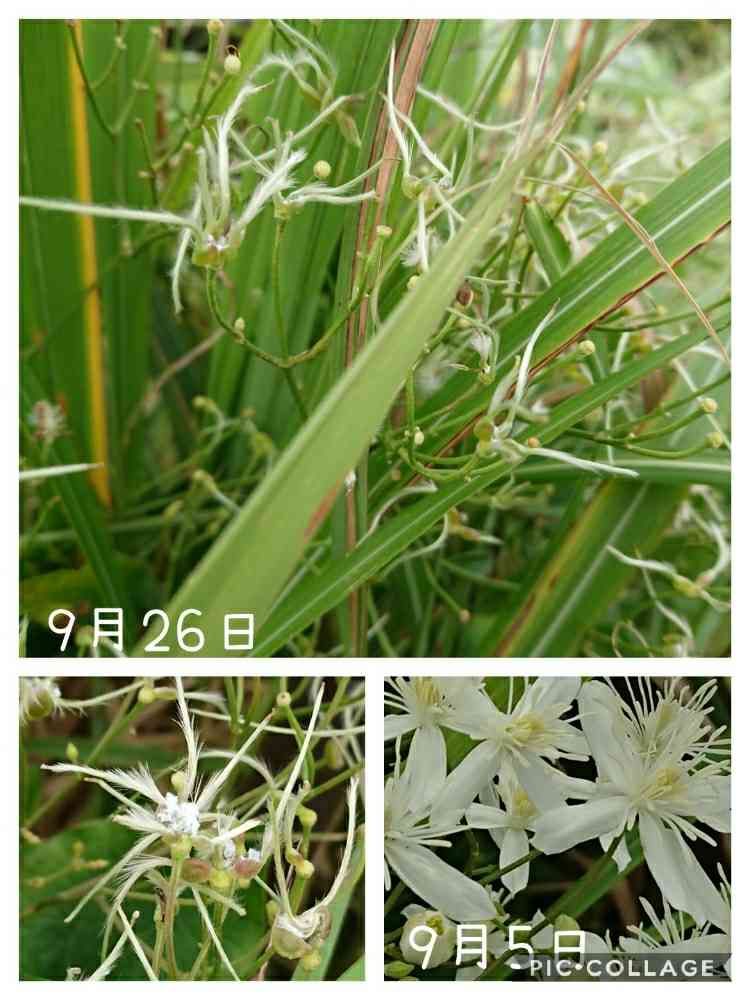9/5に投稿した「センニンソウ」のお花が終わり、綿毛(冠毛)が出来て来ました🙄