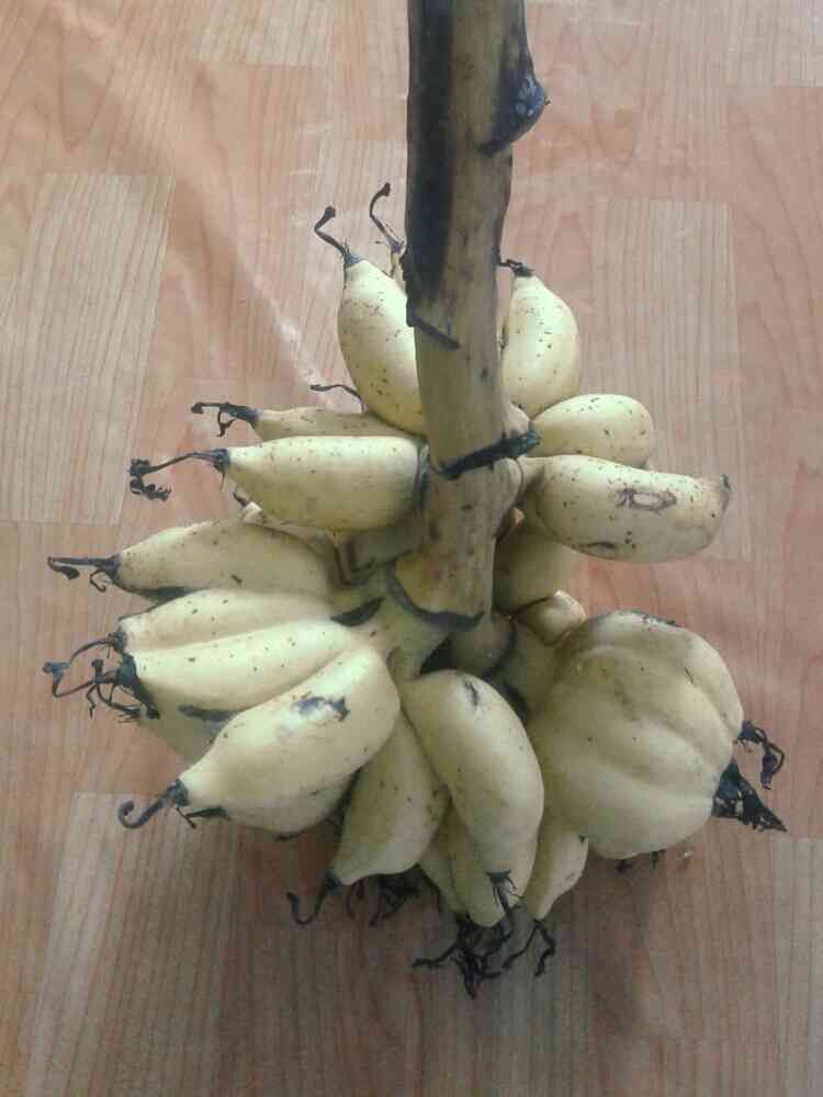 先日収穫の沖縄島バナナ、果実全部が熟したので切り分けです。