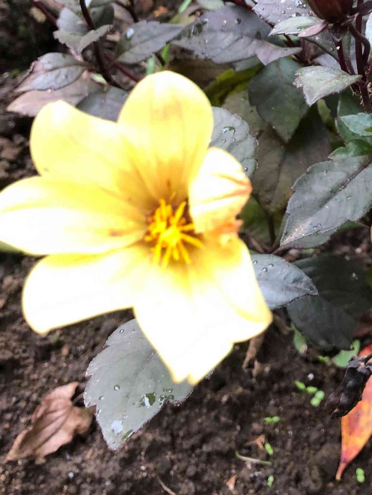 銅葉の小さなダリアが咲いてます。