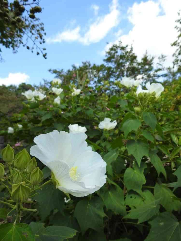 公園⛲のウォーキングコースで見かけた🍀白いフヨウの花🌸