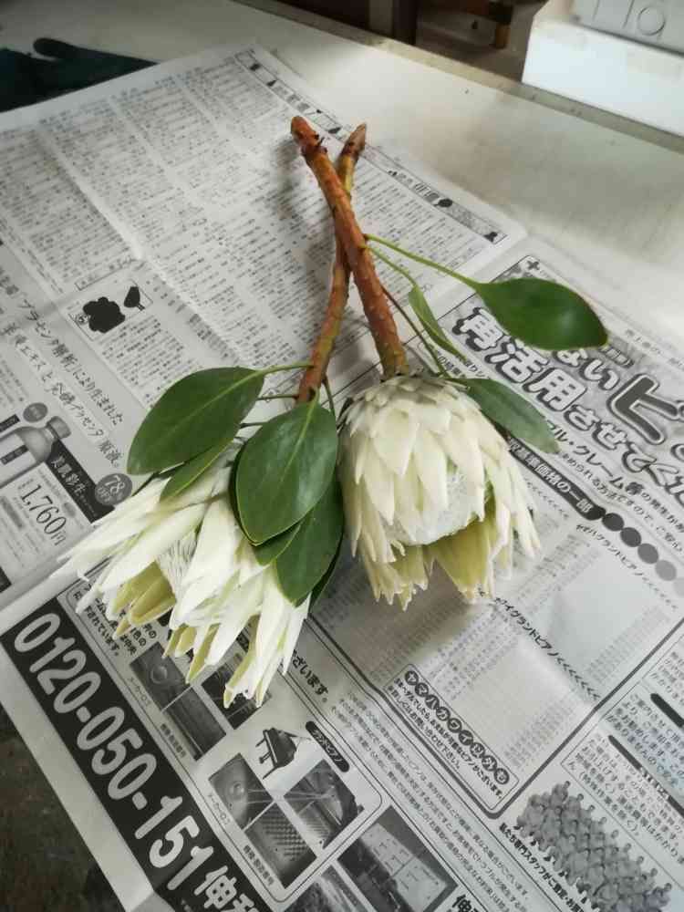 ステムが短いけど、珍しい白いキングプロテアget 😁