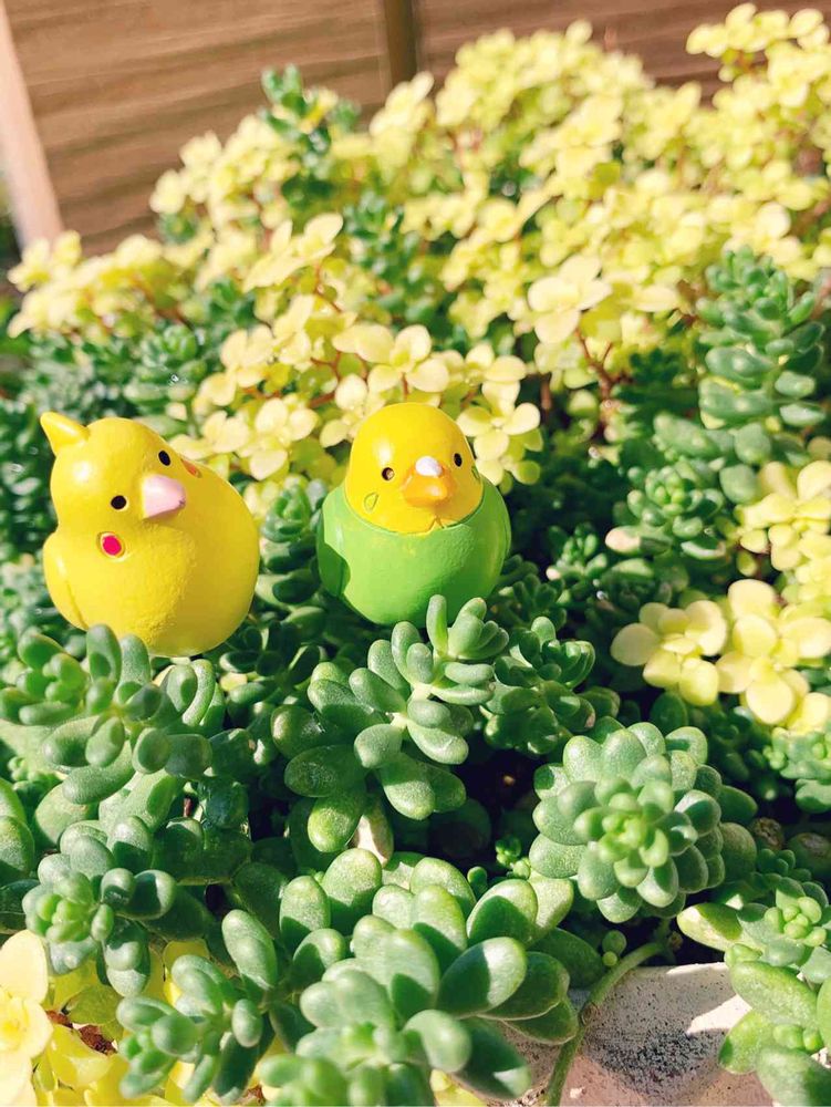 セダムの寄せ植えに小鳥のピックしてみた😊🎶