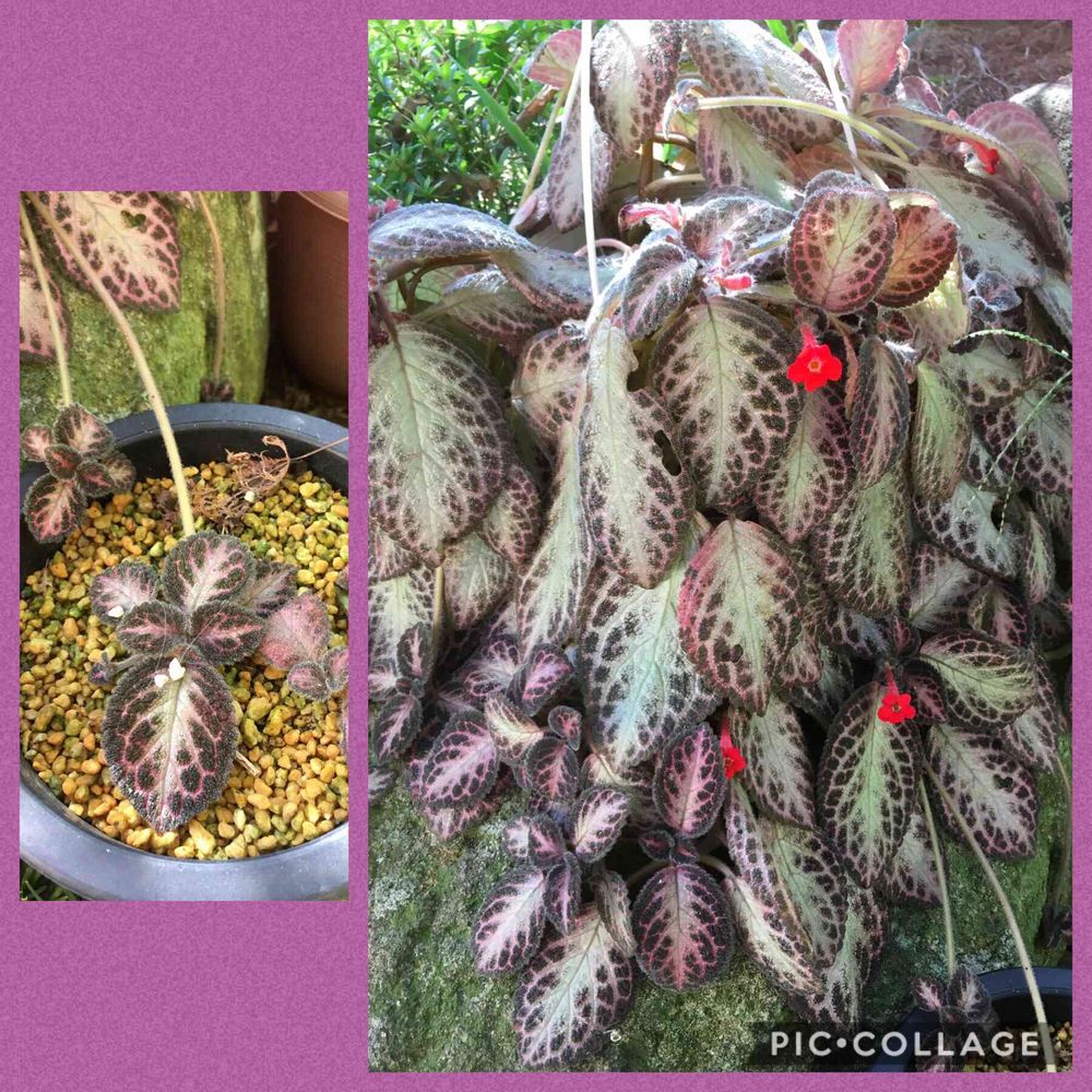 エピスシアがランナーを出して伸びてきたので鉢に採っているところ^_^根付いたら切り離しそだてまぁす❣️