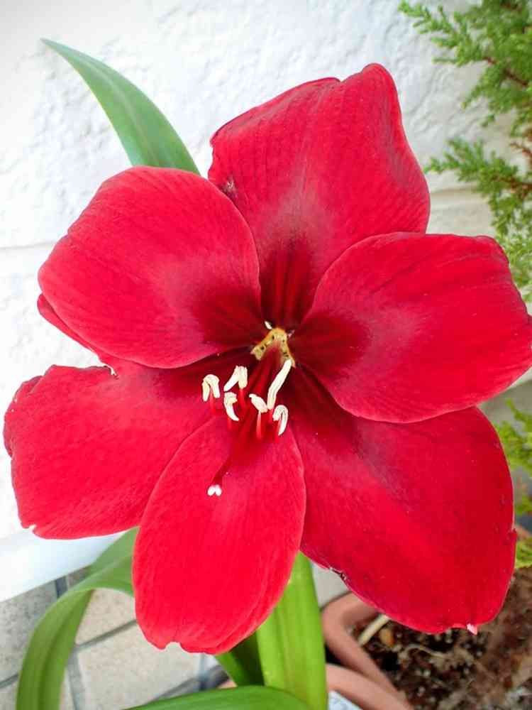 前出の、アマリリス・グランディーバのつぼみが開きました(*^▽^*)赤黒というには、赤すぎですが、写真よりは実物のほうが黒っぽさはありますねー♪本来は春に咲くのですが、今年は春には咲かず今頃になりました。変な気候だからかしら。。。💦