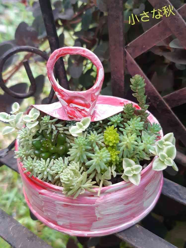 ピンク色の🥫缶でセダムがイキイキしてるね〜