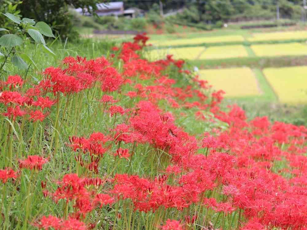 宮之城の「柊野小学校跡地」で、集落全体が彼岸花だらけ