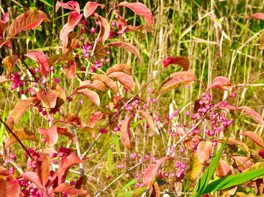 こんなんもあったよ。木によっては葉が落ちて、実だけが鈴なりでピンクに見えた😍
