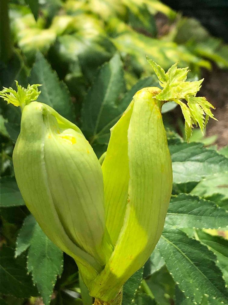 蕾の先っぽに葉っぱがついてる