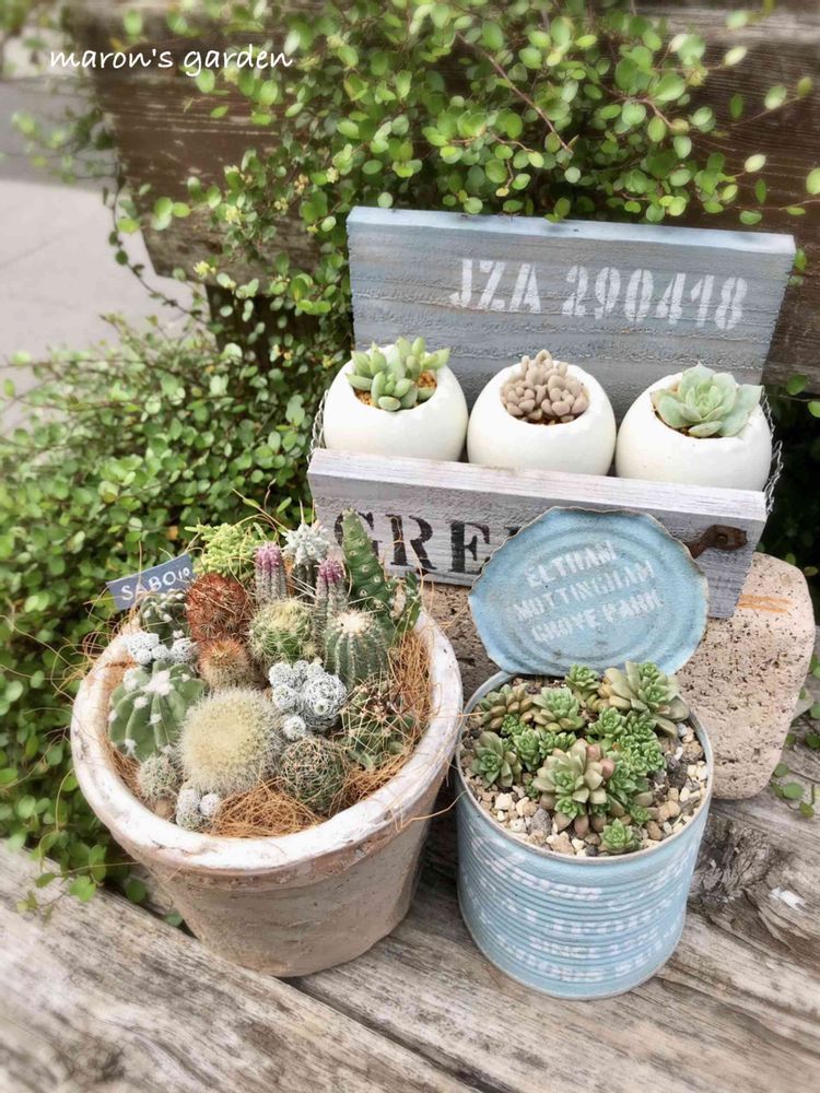 サボテンの寄せ植え、いいなぁ(๑˃̵ᴗ˂̵)まだ手を出してないサボテン🌵ガマンできるかしら(^^;;