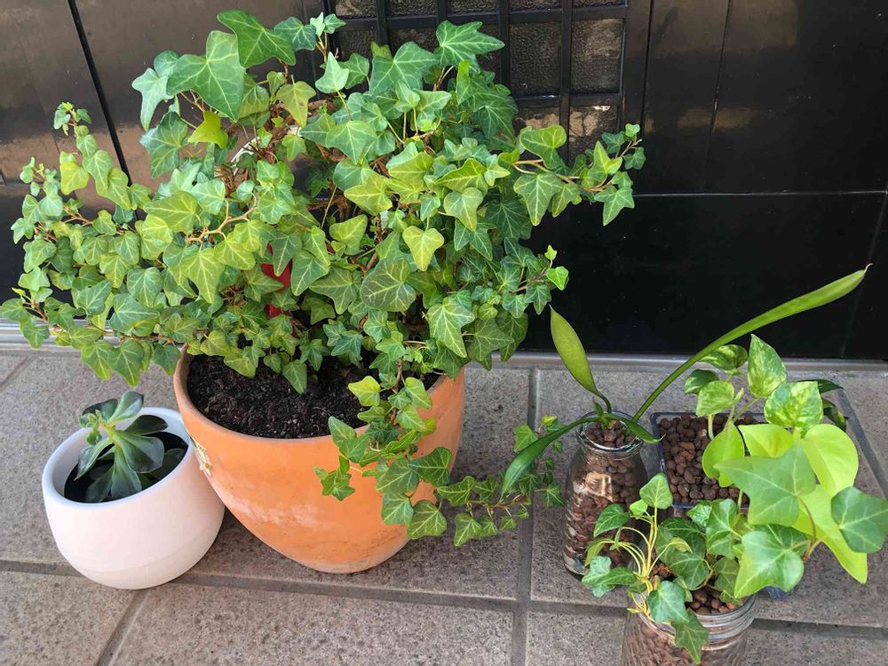 台風前に日光浴♫ やはりアイビーは日光が好きだね。