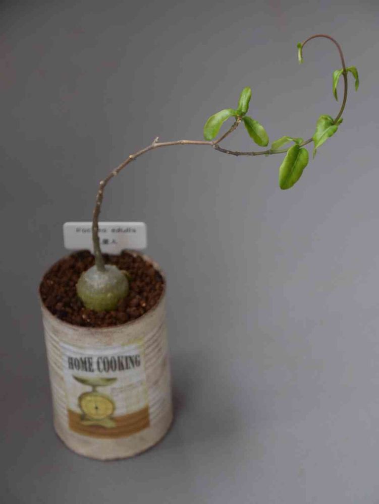 ロウルサンコで見つけたフォッケア・エデュリス(火星人)。葉枯れが続き土を替えて妻が作ったリメ缶に植え替えたら見事に葉を付けて復活・:*+.\(( °ω° ))/.:+