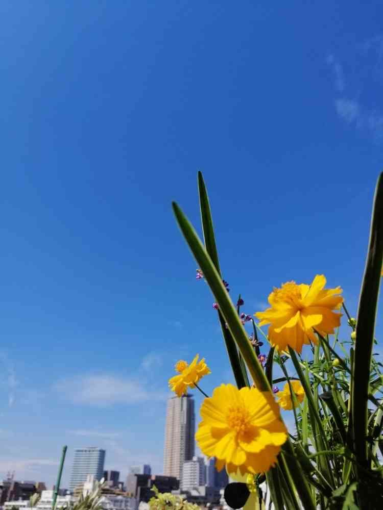 真っ青な空に黄色いコスモスが映えますね😃💕