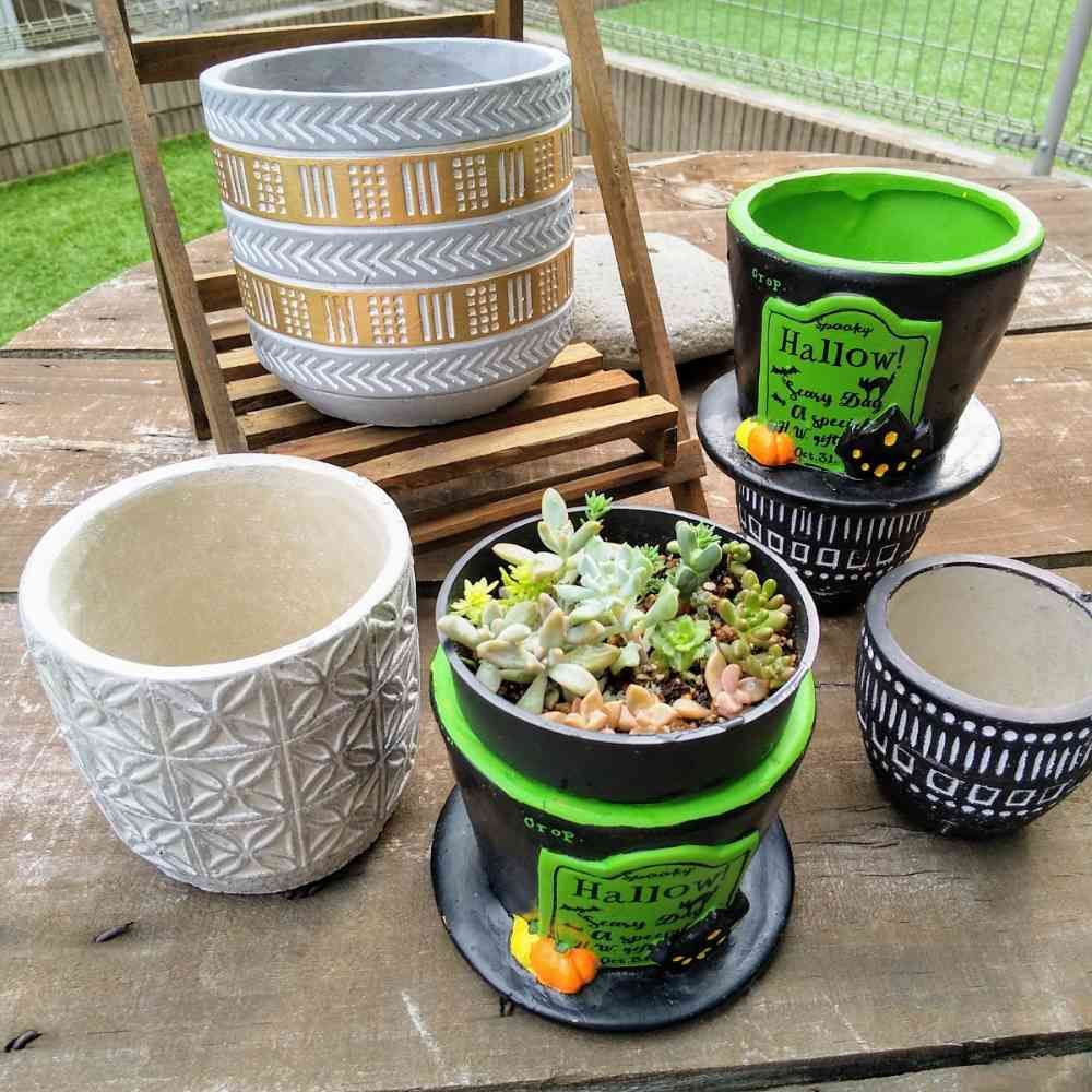 前回購入してアデニウム達を植えた陶器の鉢は売り切れていたので かなり迷いながら4つの鉢とハロウィンの鉢が安かったので2つ買いました。