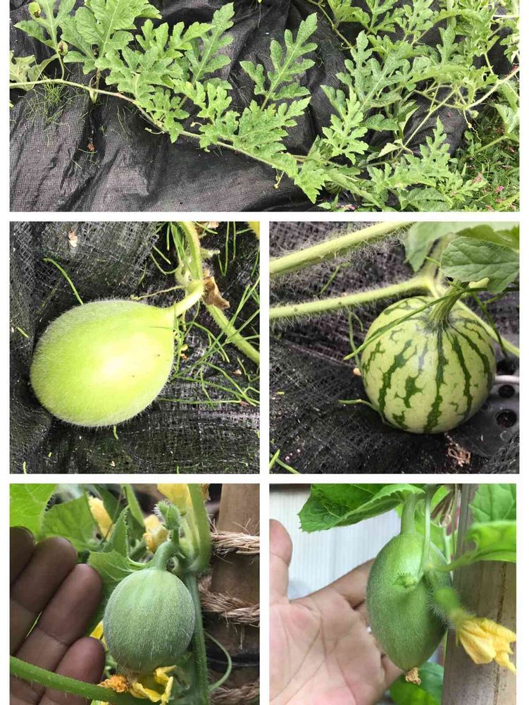 畑の子は一番大きくて、テニスボールくらい。土に触らない様に、寒冷紗敷いてあります。