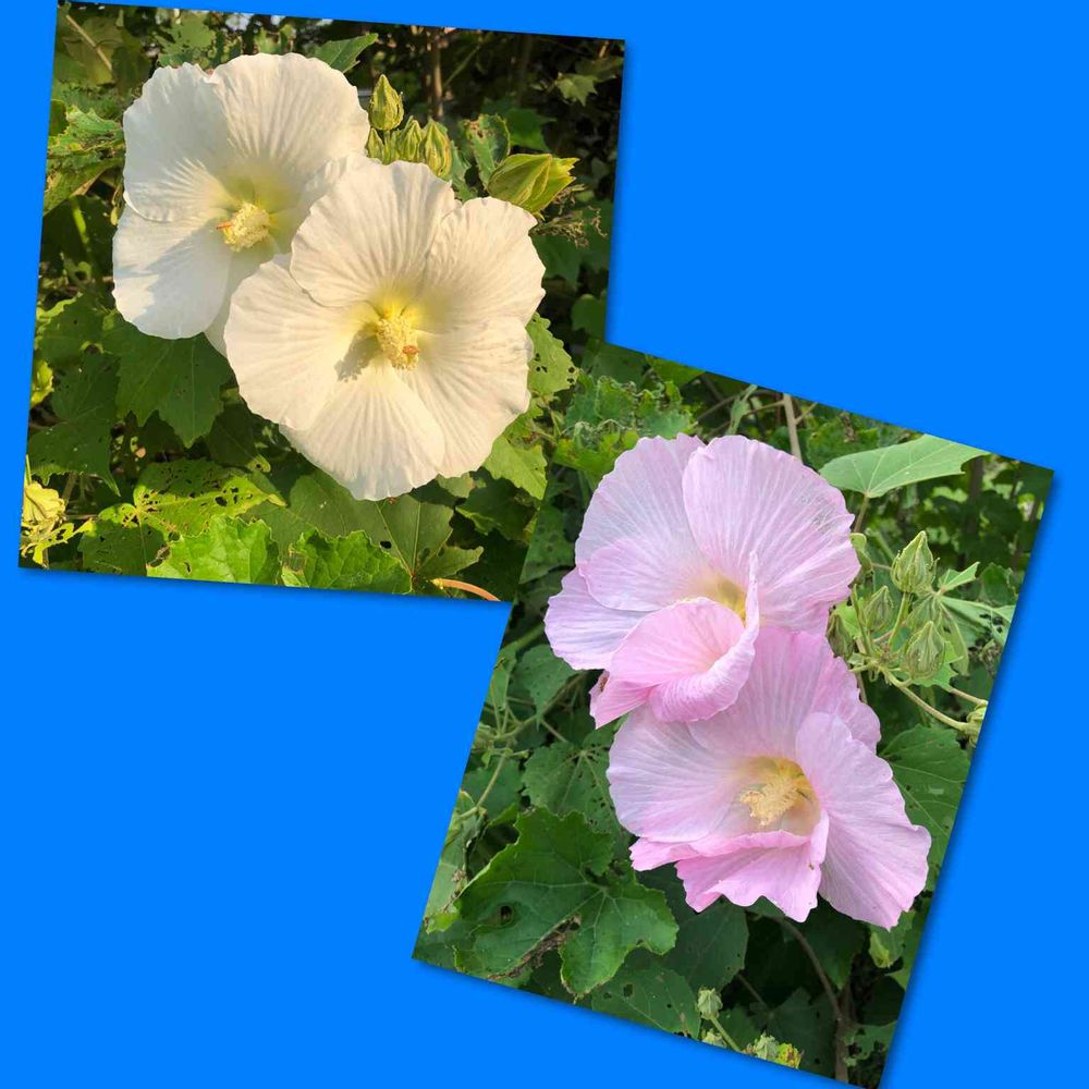 酔芙蓉ちゃん、朝と夕方で色がかわるのよ〜。