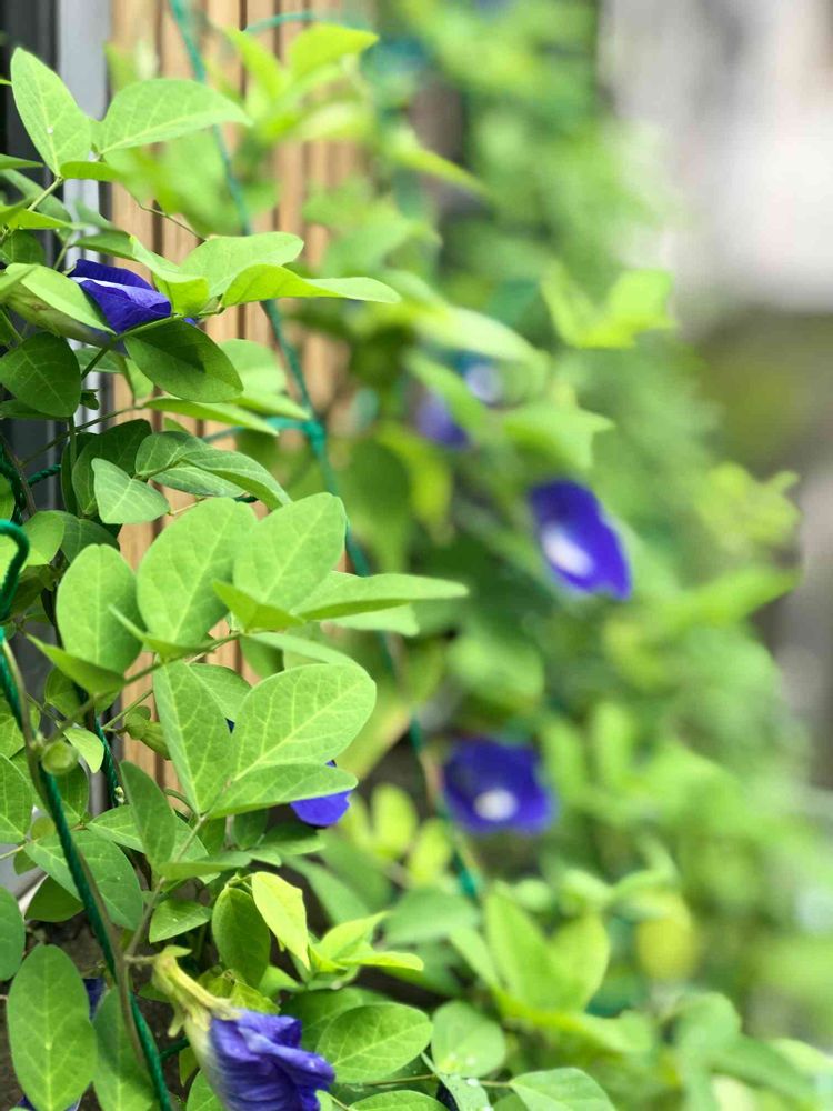やっと倉庫前のグリーンカーテンのクリトリア🍃が咲き始めました(^^;;