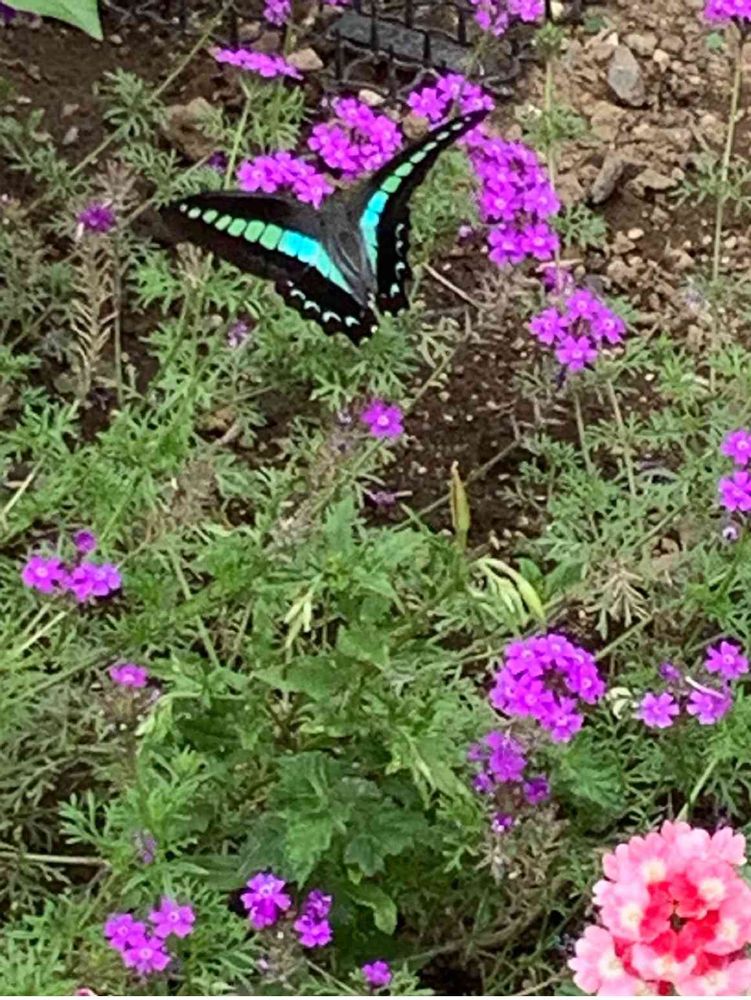 今日の花バーベナ2種とアオスジアゲハ🦋