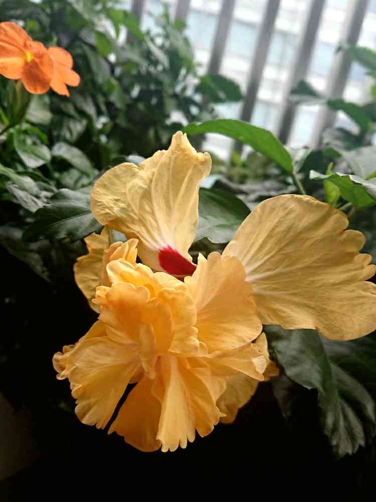 バルコニー/ベランダ,ハイビスカス イエローフラミンゴ,ハイビスカス咲きましたの投稿画像