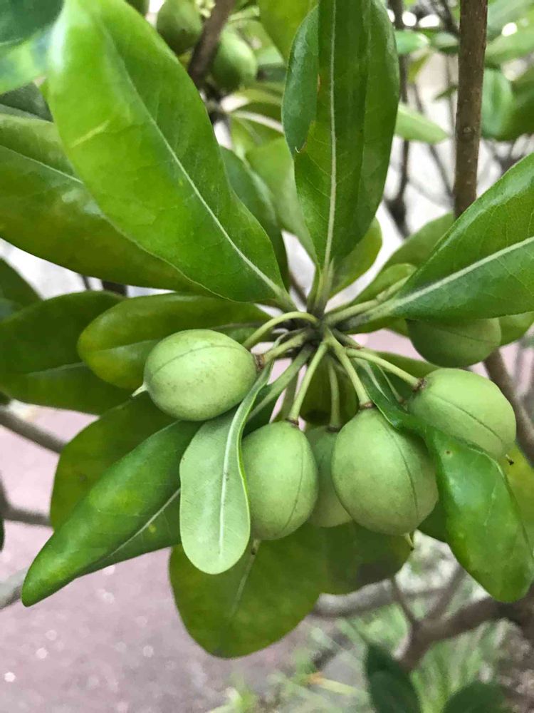 トベラの実。tanpopo23さんに教えていただきました。花に比べて結構大きな実ですが色が葉の色がと似ているので目立ちません。初めて見っけ!😃😃😃