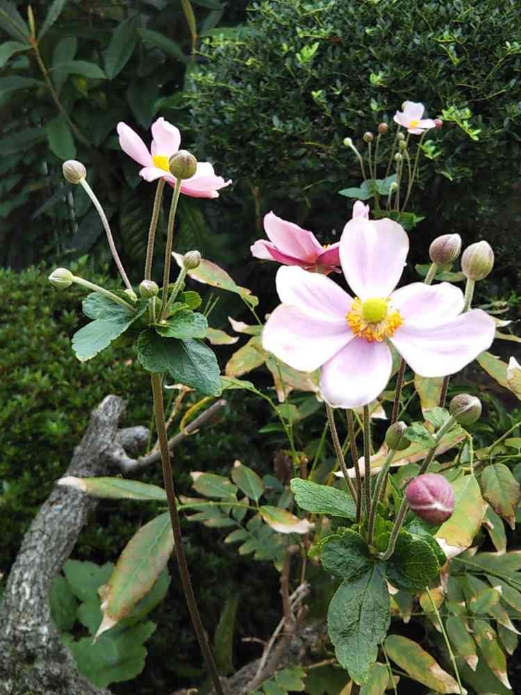 小さな庭,シュウメイギク,秋風の中での投稿画像