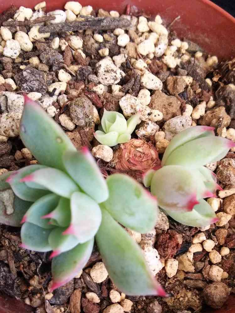 先日の成長点逃亡のチワワさん。お母様はカットして葉挿しへ。足下にはお子ちゃまがしっかりと育ったました😚