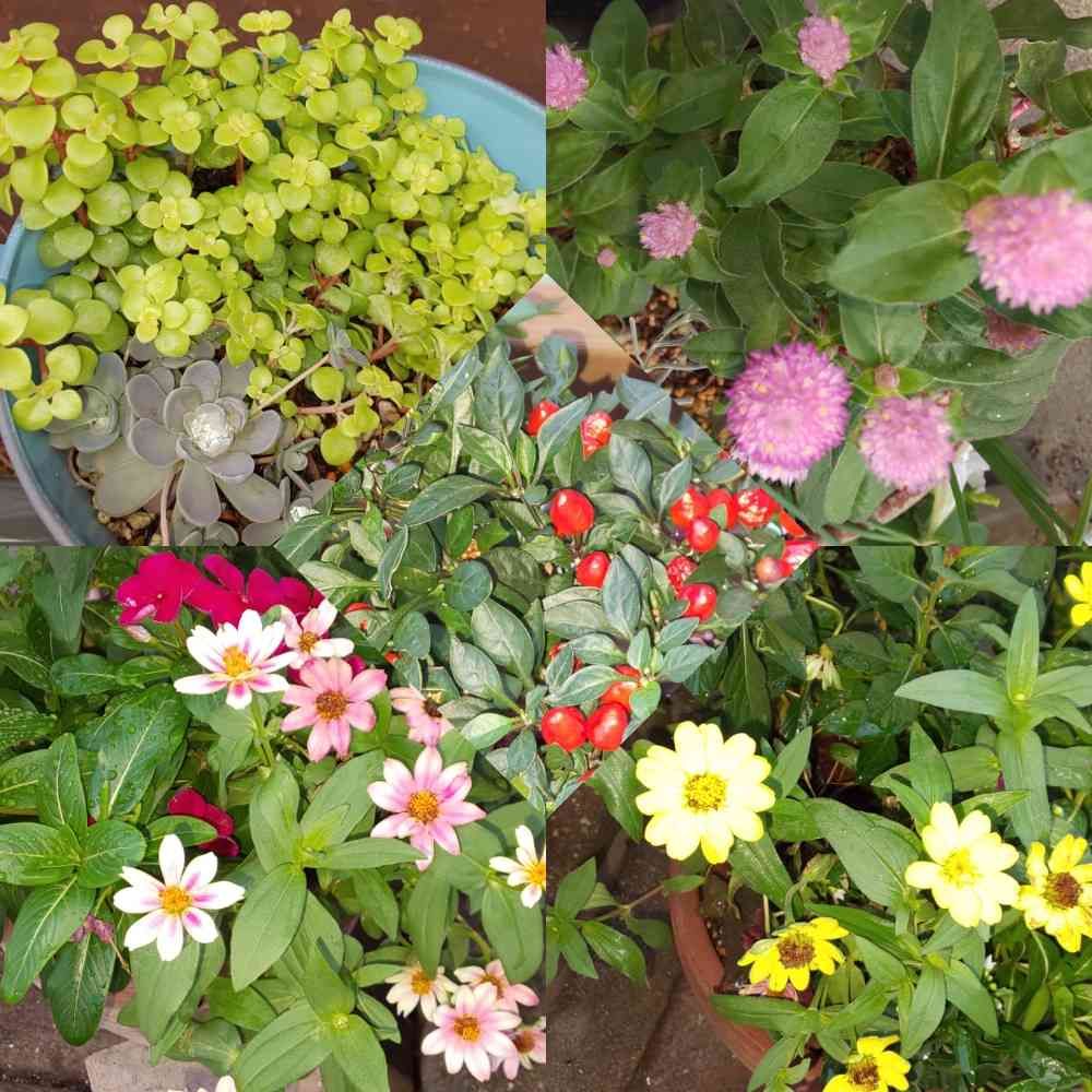 五色唐辛子もニチニチソウと一緒に寄せ植えしてありました!ニチニチソウがまだまだ頑張って咲いてくれているんですよねWw𐤔ʷ 🤣ّ ʷ𐤔wW