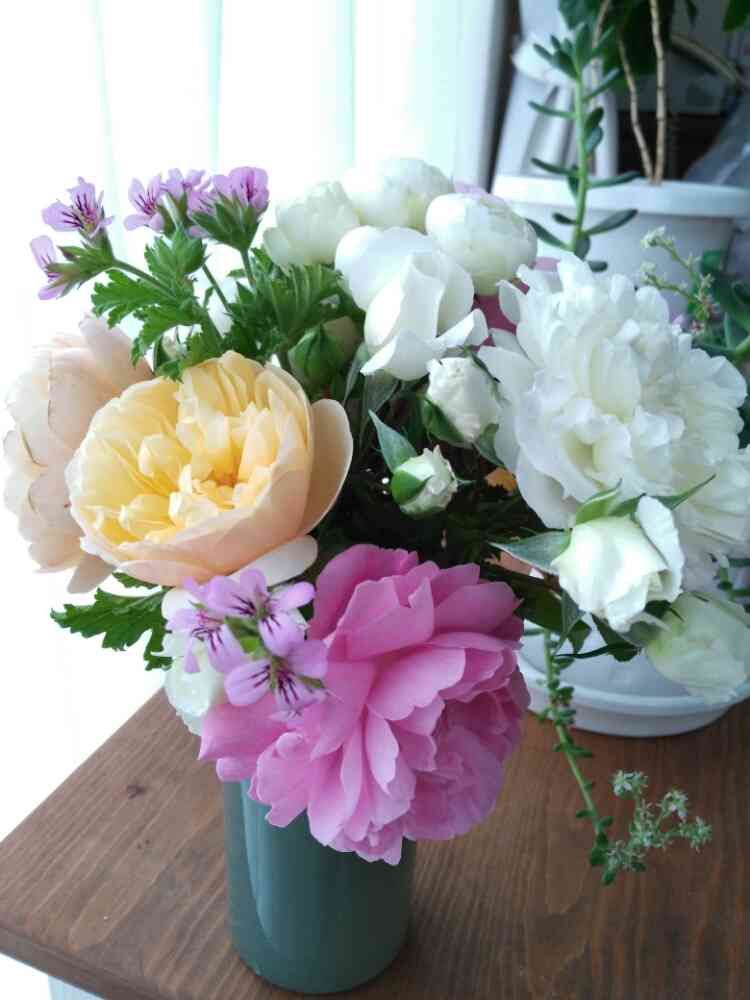 ちょうどタイミング良く何種類かの🌹が咲いたので、全部カット✂して💐にしました😊✨